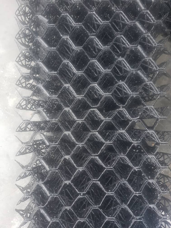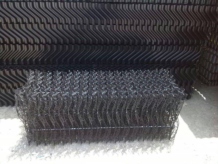 پکینگ از جنس pp با ابعاد 30 در 120 در 100 سانتی متر - سطح مدیا 90 مترمربع بر مترمکعب می باشد - مخصوص آب های چرب و کثیف - بیشتر در صنایع غذایی بدلیل رسوب گذاری دیر هنگام مورد استقبال است - خاصیت پکینگ اتمایز یا پودر کردن آب می باشد به این طریق گرمای نهان آب را میگیرد .